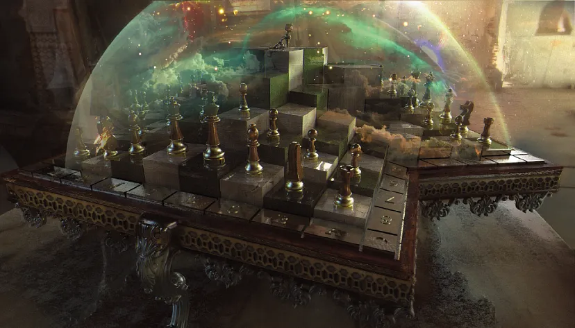 Первоначальная идея цивилизации на шахматной доске пришла от исполнительного продюсера Уолтера Паркса. «Это была одна из давних идей все контекста — могла ли существовать инопланетная цивилизация, живущая на шахматной доске?» — говорит писатель Мэтт Холлоуэй. Это была лишь одна из идей: мир, где все — от пешек до королевы — выполняли бы свои роли.