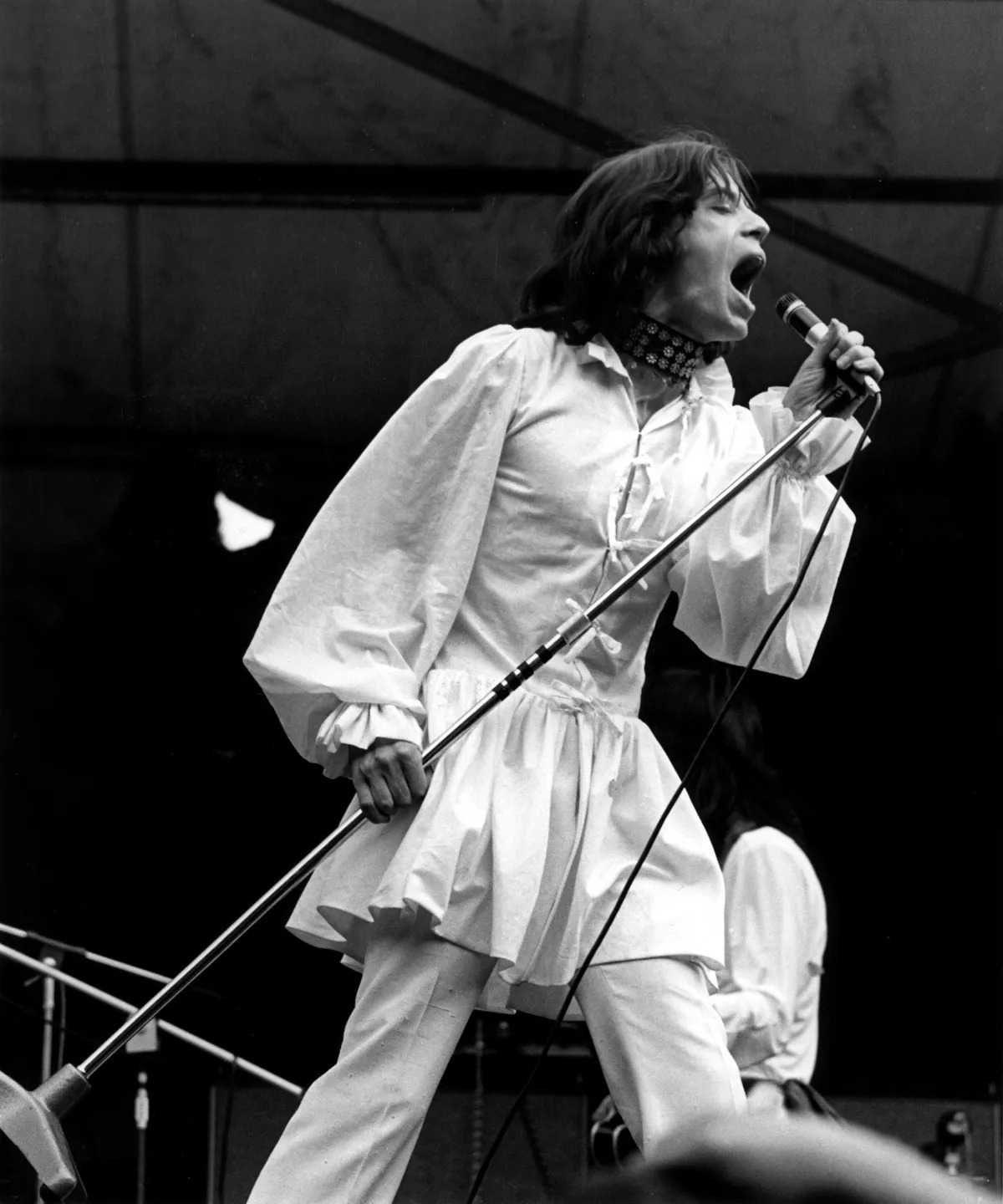 Мик Джаггер во время летнего концерта в Гайд-парке, 1969 год