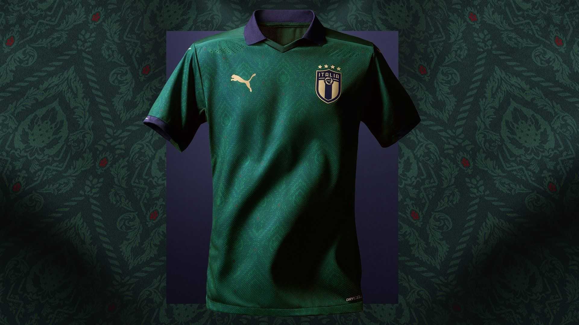 Но самая оригинальная форма чемпионата Европы — это зелёная альтернативная с отсылками к произведениям эпохи Возрождения. К сожалению, маловероятно, что итальянцы сыграют в этом комплекте, так как на международных турнирах не принято играть в третьих комплектах.