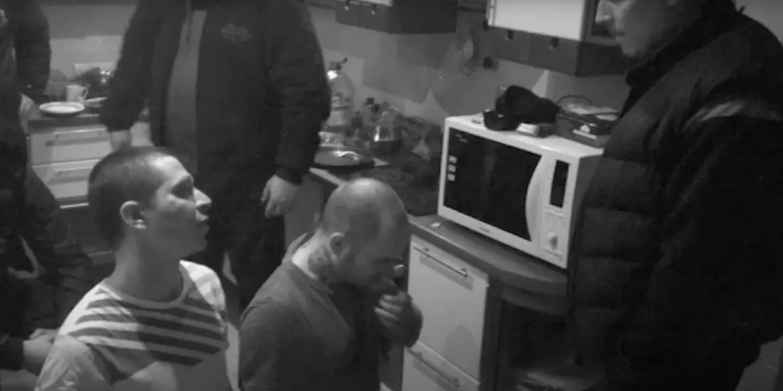 Мужчина на видео — рэпер Рома Жиган (Роман Чумаков, Джиган — абсолютно другой исполнитель), с которым 2011 году произошёл конфликт у тогда ещё участников объединения Vagabund Оксимирона и Шокка (он же Дмитрий Бамберг, настоящее имя — Дмитрий Хинтер). Рэперы периодически задевали его в треках. Например, в «Дегенеративном искусстве» они поют «лучше быть за СПИД, наркотики, и пи***асов», что отсылает к треку Жигана «Я против СПИДа, наркотиков и пи***асов». Возможно, было что-то ещё, потому что Оксимирон читает про Шокка: «Я угорал над их рифмой, стебал за стиль, а он угрожал при конфликтах и лично цеплял родных».