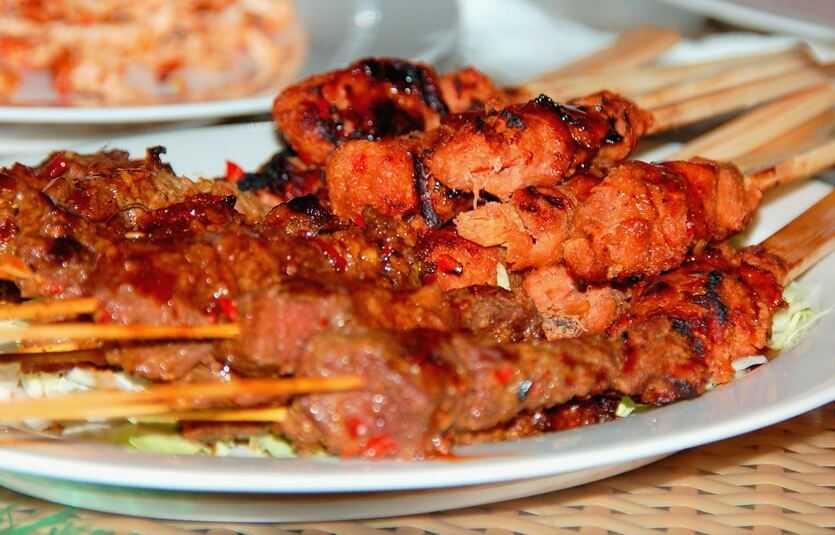 Самое популярное блюдо индонезийской кухни, легендарный стрит-фуд, который нужно обязательно попробовать на Бали. Аппетитные миниатюрные шашлыки на деревянных шпажках – на любой вкус. Чаще всего сате в Индонезии готовят из мяса, птицы или морепродуктов (попробуйте креветок – это невероятно вкусно!) с добавлением пряностей. Вегетарианцам на Бали можно поесть сате из овощей с тофу или из фруктов. Ценителям экзотики стоит попробовать шашлычки из кобры, мяса черепахи, бараньих яичек или даже телячьей кожи в специях. Сате входит в топ-50 лучших блюд мира по версии CNN. Закуска является самой популярной уличной едой в Индонезии, а потому местные жители и туристы покупают ее на рынках или в открытых закусочных. Смело делайте то же самое.