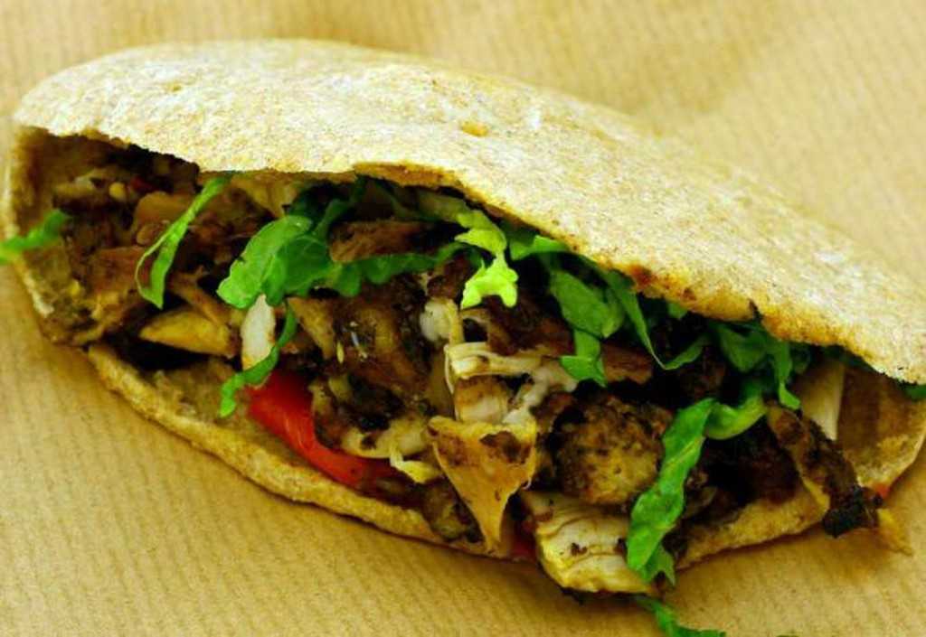Фалафель — это овощные котлетки из нута. Бобы замачивают, отваривают и перетирают в пюре. Щедро приправляют пряными специями, формируют круглые котлетки и обжаривают в масле. Вместе со свежими и маринованными овощами, хумусом и соусом помещают внутрь питы — горячей булочки, надрезанной с одной стороны.