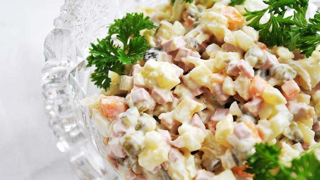 Своеобразным символом таких перемен можно считать салат оливье. Оригинальное творение Люсьена Оливье, шеф-повара московского ресторана «Эрмитаж», готовилось с использованием мяса рябчиков, раковых шеек, телячьего языка, паюсной икры, латука, каперсов, корнишонов, рубленого ланспика и специальной заправки. После 1917 года рябчиков заменили на вареную колбасу, заправку — на промышленный майонез, каперсы и корнишоны— на соленые огурцы и консервированный горошек, а от всего остального и вовсе отказались. В таком сильно трансформированном виде суперхит высокой русской кухни благополучно дожил до наших дней.