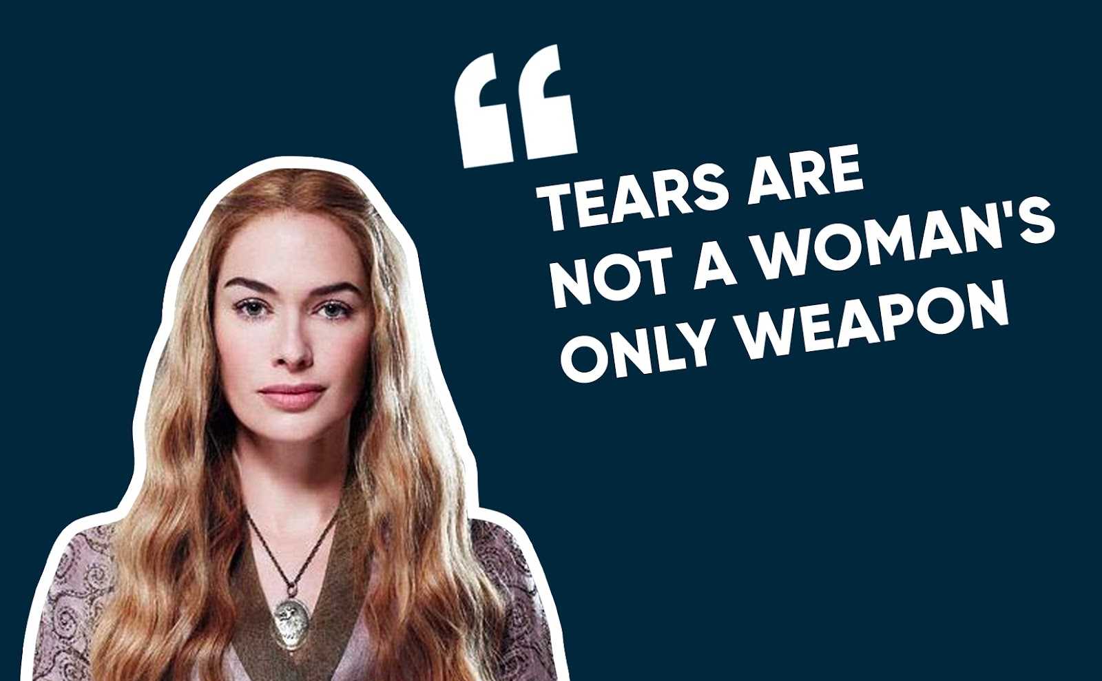 | You little fool. Tears are not a woman’s only weapon. You’ve got another one between your legs, and you’d best learn to use it. | Ты маленькая дурочка. Слезы — не единственное оружие женщины. У тебя есть еще одно между ног, и тебе лучше научиться им пользоваться. |