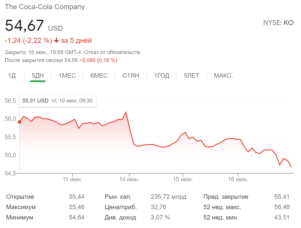 Дело в том, что ровно в понедельник, 14 июня, для акций Coca-Cola был экс-дивидендный день.