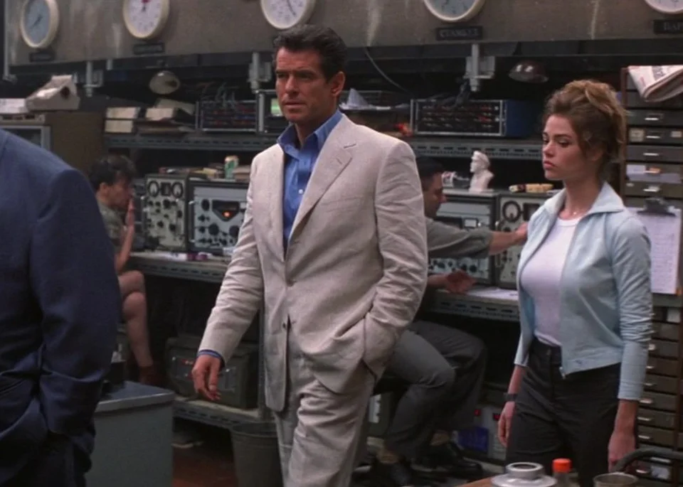 Пирс Броснан ворвался в мир бондианы с сиквелом «Золотой глаз» в 1995 году, когда спецэффекты шагнули далеко вперед, а мужская деловая мода, наоборот, вернулась в 1940-е. Агенту 007 приходится меняться и как-то приспосабливаться к новому времени. Теперь он в меру серьезен и в меру ироничен, но по-прежнему эффектно выполняет задания и не менее красиво соблазняет женщин.
