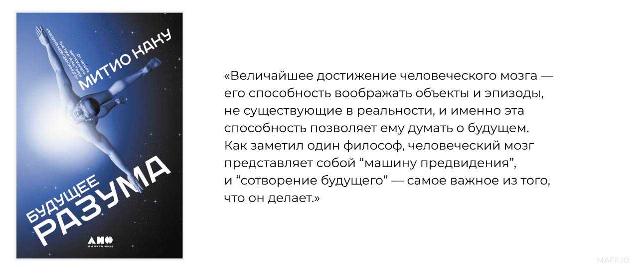 Книга Будущее разума. Митио Каку при ее написании опирался на исследования в области нейробиологии и физики. С их помощью он представил, как цифровые технологии и генная модификация изменят образ мышления человека.