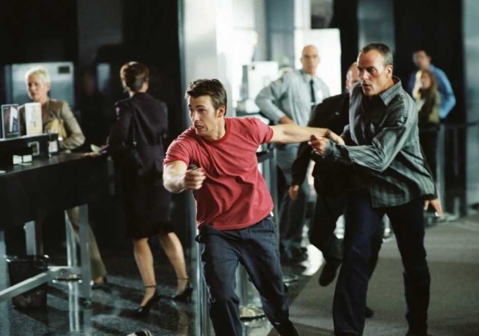 Крис Эванс и Антон Ельчин в фильме «Жестокие люди»