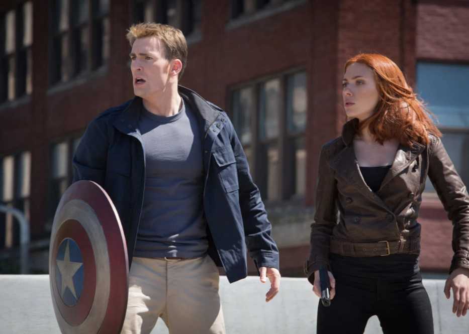 Крис Эванс и Скарлет Йоханссон в фильме «Первый мститель: Другая война»