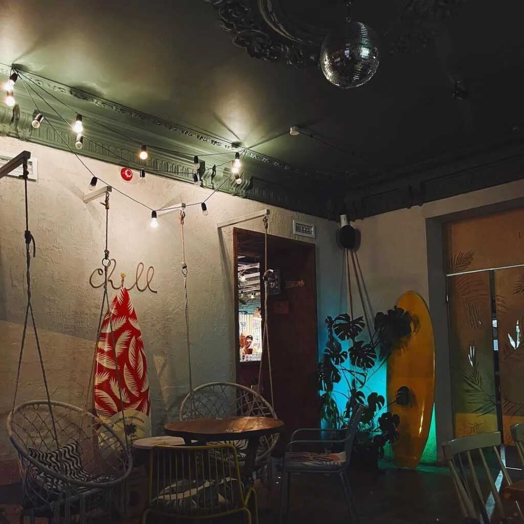Команда Branch Garage называет своё место «гараж-баром». Не поспоришь: и бар, и гараж. Внутри наливают , во дворе паркуются мотоциклы и скутеры. Для машины места на парковке, видимо, не хватило — поэтому её повесили под потолком. Брутальную картину дополняют острая мексиканская еда и американский фастфуд, граффити, бильярд, кикер и барбекю. Стереотипному волосатому байкеру должно понравиться.