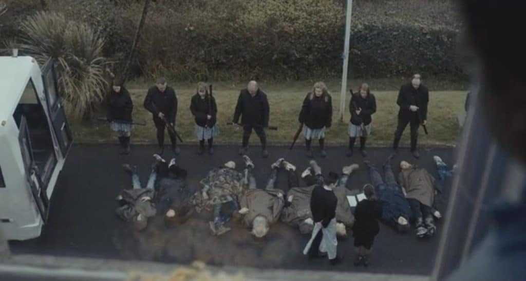 Не все, впрочем, так радужно в «свободной» партизанской группировке. Попав в компанию шастающих по лесу и время от времени устраивающих диверсии одиночек, Дэвид оказывается в еще одном строго регламентированном социуме. Только со знаком минус. Лесной мир — зеркальное отражение мира отеля. Та же диктатура, только «вверх ногами». Вместо матримониального «выкручивания рук» — диктат воинствующего эгоцентризма. Под запретом любые проявления человеческих чувств. Танцы — на «пионерском» расстоянии под электронную музыку (у каждого — индивидуальные наушники и собственная мелодия), за поцелуи — ампутация губ. И никакой взаимопомощи. Даже могилу, если что, никто для усопшего не выроет: обязан выкопать сам. Заранее. И примерить, по размеру ли.