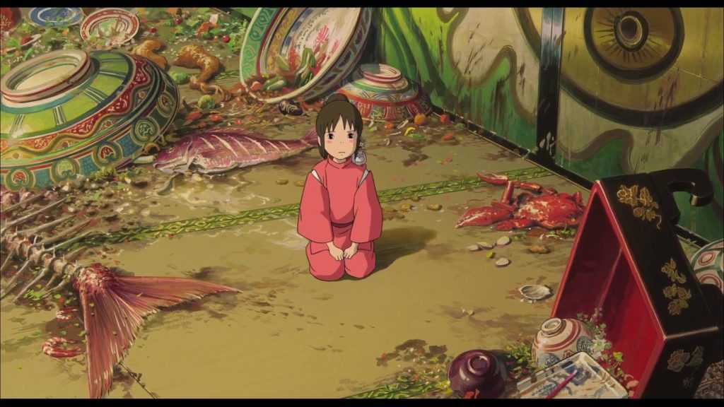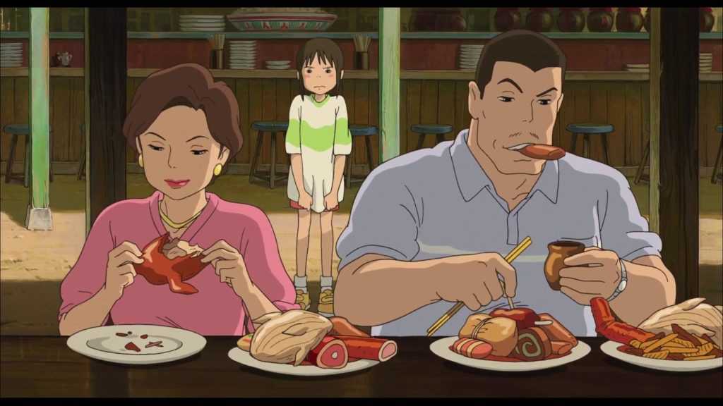 В начале фильма мы видим как Тихиро тяжело дается переезд и разрыв с прошлой жизнью. Она кажется нам капризной и безучастной к происходящему, тогда как ее родители вполне довольны предстоящими переменами. Они оживленно беседуют, смеются, не обращая внимания на подавленное настроение дочери.