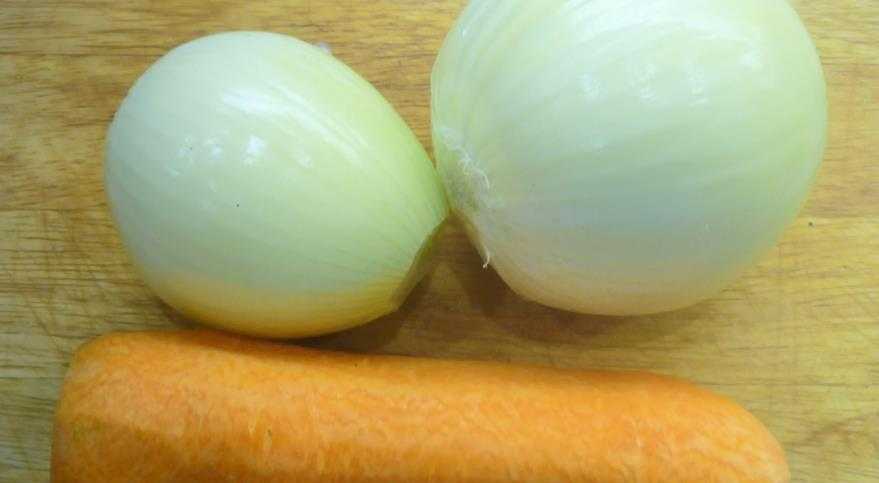 Очищенные грибы отварить 30 минут в предварительно соленой воде. Лук и морковь нашинковать полукольцами.