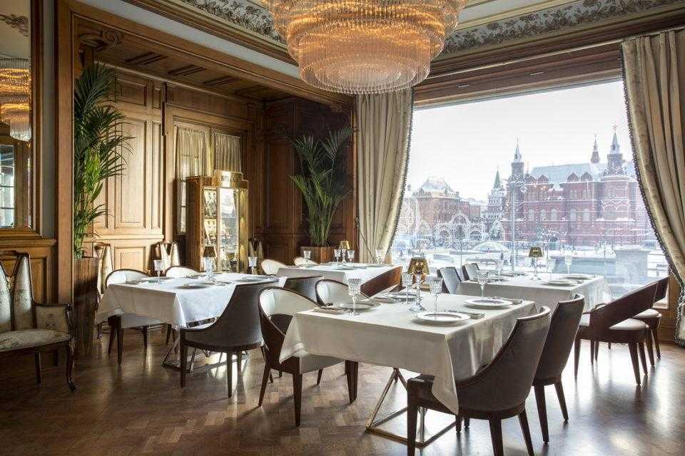 В Гранд-кафе «Dr. Живаго» есть и максимально камерная комната на четверых, и зал «Палех», который можно забронировать полностью, если встреча предполагает около 35 участников. Однако стоить учитывать большую степень театральности этого ресторана: Кремль за окном, Малевич, Петров-Водкин, Дейнека и Самохвалов на стенах, красные стулья и обязательные для ресторанов Раппопорта красные бокалы для воды – без застолья с водкой такие яркие декорации вряд ли окажутся уместными. Зато этажом выше – во флагманском ресторане «Белуга» – все, наоборот, чинно и спокойно. Формальный обед или ужин с черной икрой там можно сервировать в отдельном зале на 20 персон и при желании закрыть двери. В середине осени в «Белуге» сменился шеф-повар – им стал Евгений Викентьев, известный по питерским Hamlet + Jacks и «Винному шкафу». Постепенно он вводит в меню ресторана российских деликатесов новые блюда, за которыми под микроскопом следит московская гастрономическая общественность, так что сейчас есть дополнительный повод выбрать для встречи именно это место.