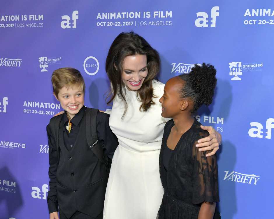 Анжелина Джоли пришла на премьеру мультфильма «Добытчик» в платье невесты российского дизайнера Ульяны Сергеенко