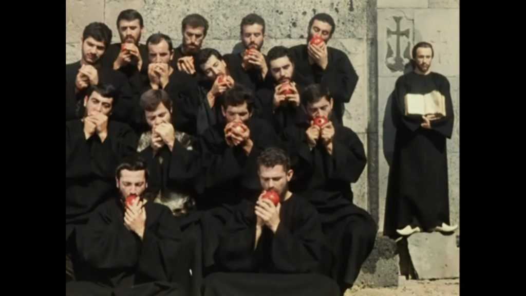 Сюжет посвящен средневековому поэту Саят-Нове. Жил сей персонаж на Кавказе, пел песенки, сочинял стихи, развлекал царевен. Но никто не знал, кто он и откуда. Поэтому народ от нечего делать начал пускать про него слухи и легенды. И вот фильм Параджанова – это как бы биография реальной исторической личности, но собранная из осколков этих легенд и преданий, как зерна граната, формирующие один плод. Фильм буквально кишит сюрреалистическими сценами на уровне Сальвадора Дали. Поэтому кино так хорошо приняли на Западе, даже несмотря на то, что никто слыхом не слыхивал про этого вашего Саят-Нову.