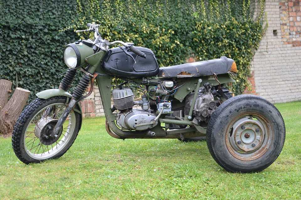 Были и умельцы, которые делали трёхколесные мотоциклы своими руками, оснастив заднюю ось двумя колёсами. Конструкция была хоть и не особенно практичной, но для эксплуатации в деревне прекрасно подходила.