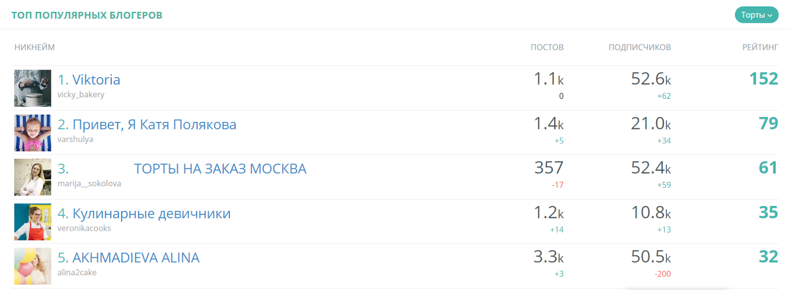 Популярные блогеры в разделе «торты» на LIVEDUNE