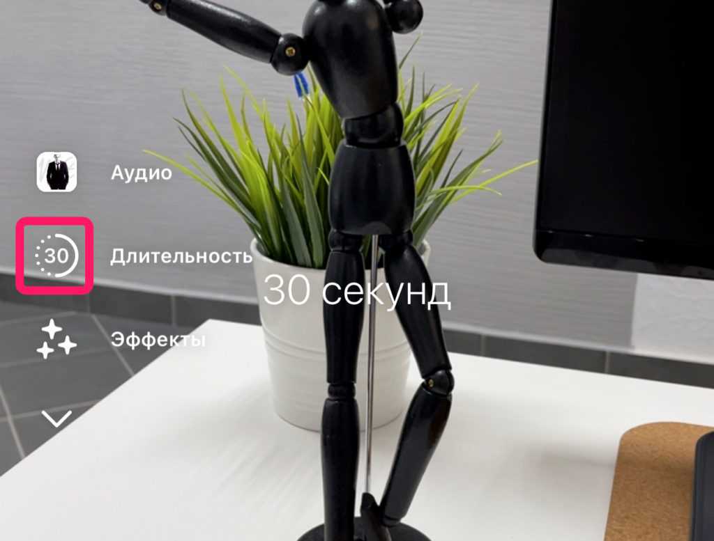 Для вашего Reels вы можете выбрать длительность ролика в 15, 30 или 60 секунд.