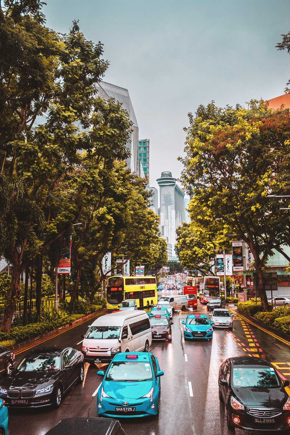 Оживленные улицы Сингапура. Фото сделано со второго яруса автобуса. Как видите – с погодой нам повезло Тропический дождь шел оба дня