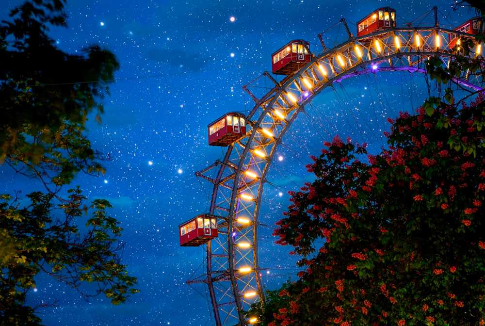 Венское колесо обозрения появилось в 1897 году в Пратере и сразу же стало одним из символов города. С высоты шестьдесят пять метров открываются самые захватывающие виды на Дунай и Вену. Особенно красивым город выглядит вечером, когда зажигается иллюминация. Для романтиков есть возможность забронировать отдельную кабинку для личного мероприятия, например, свадьбы, дня рождения или другого семейного торжества.