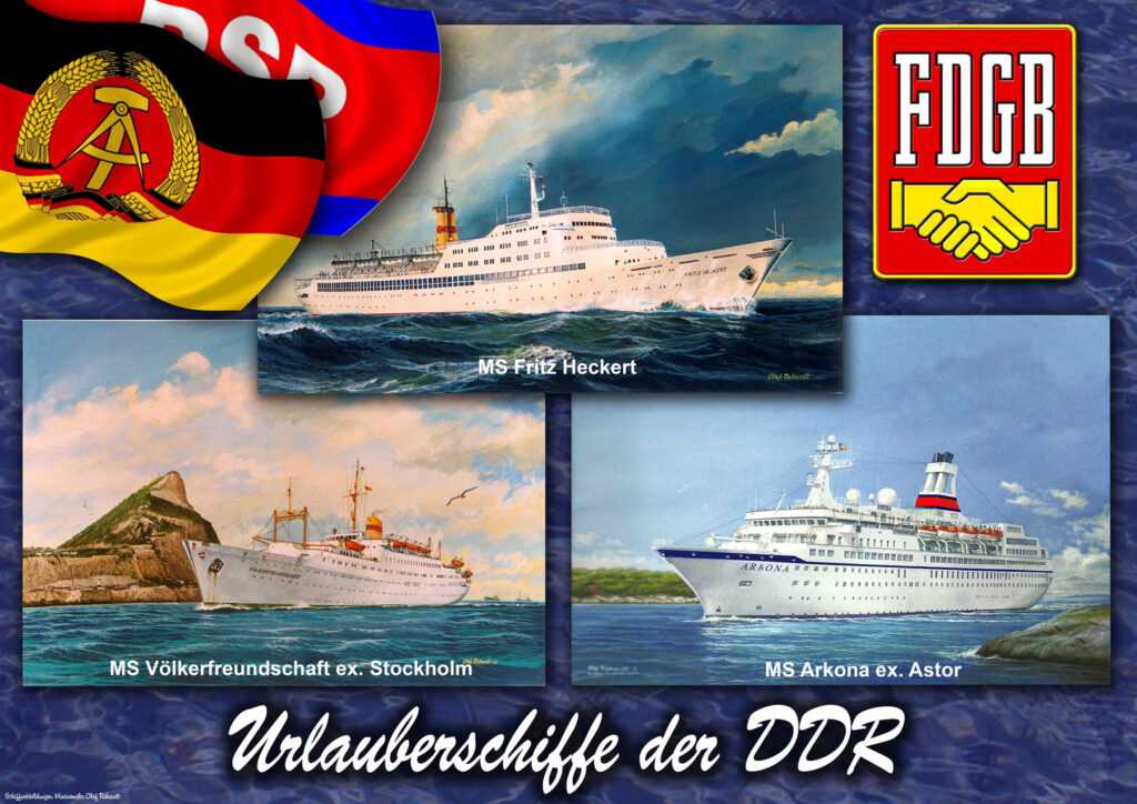 Плакат начала 90-х годов компании DSR, рекламирующий «праздничные корабли» Arkona, Fritz Heckert и Volkerfreundshaft //Фото: fotocommunity.de