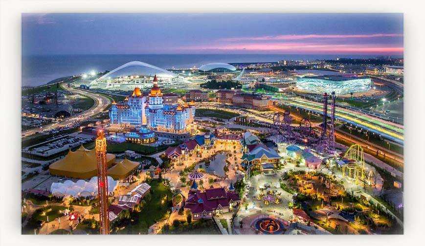 И в Лазаревском есть свой центр с красивым храмом. В Хостеэто обновлённый стадион.