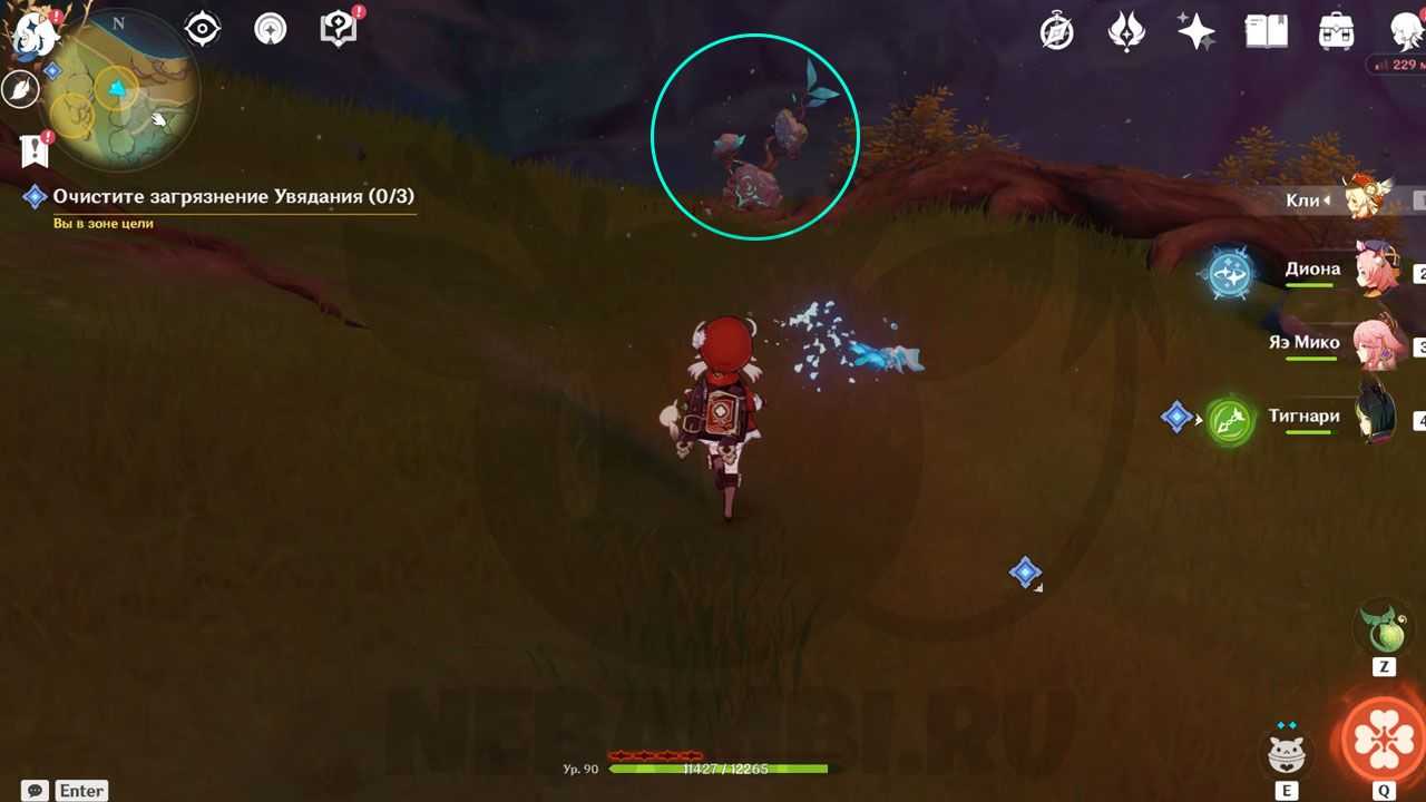 Нам нужно очистить загрязнение Увядания с помощью кусавы и дендрогранумов.