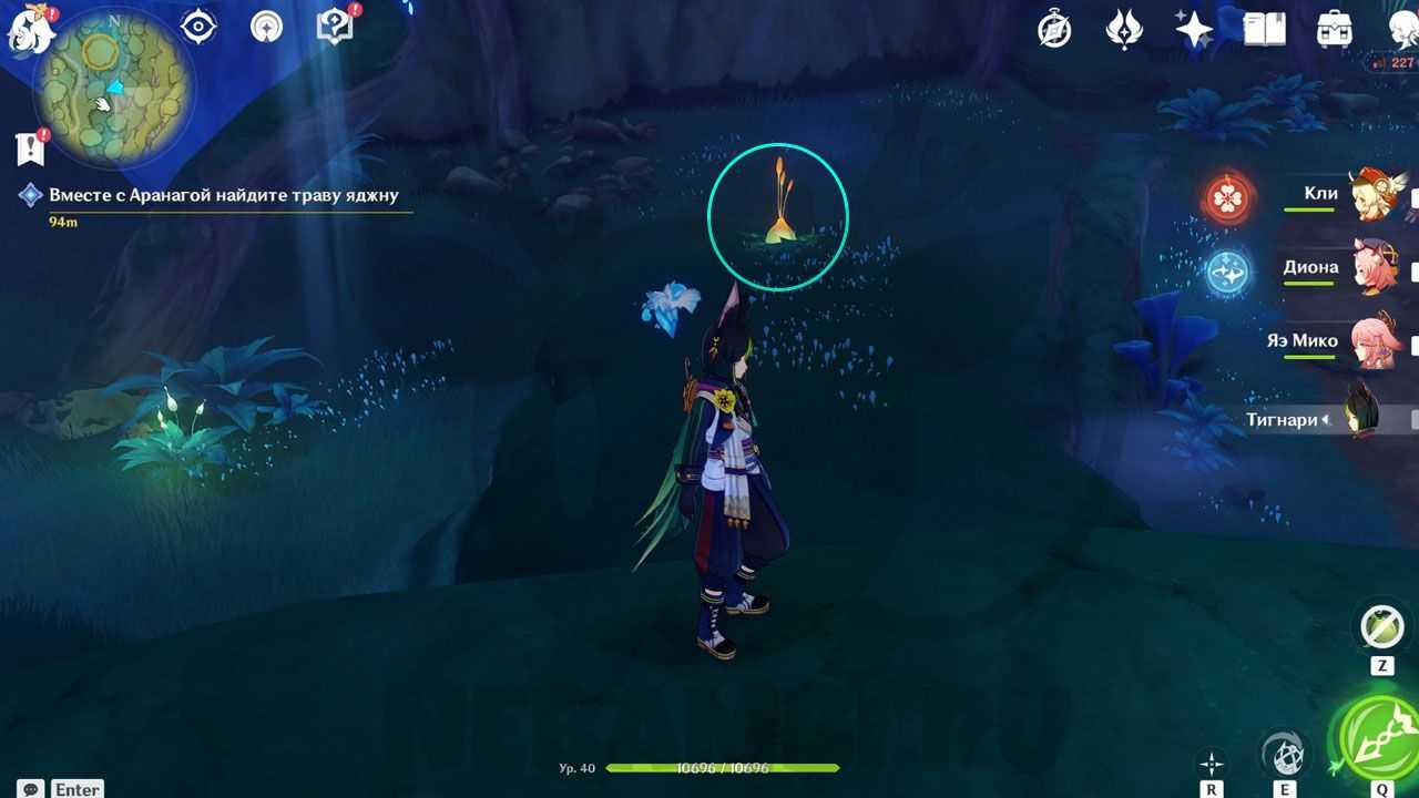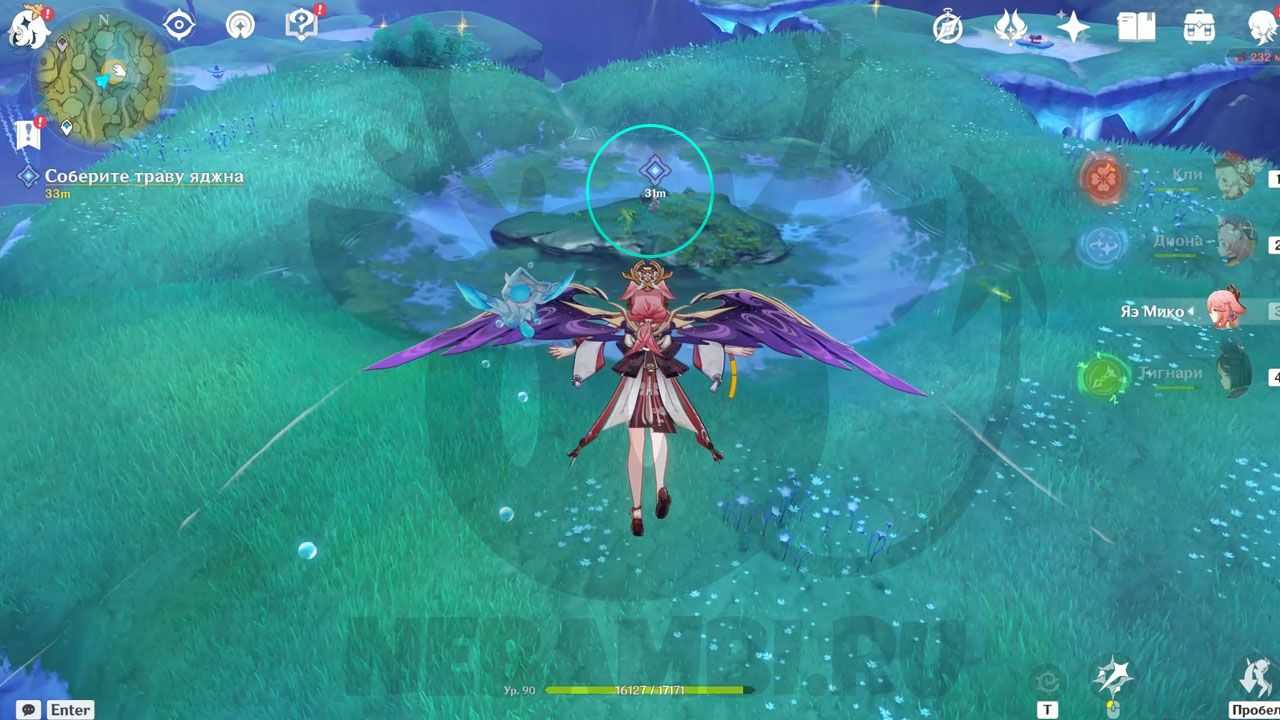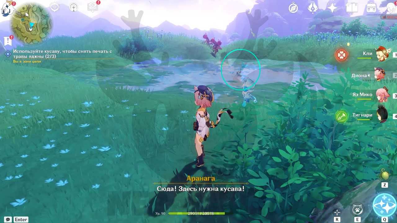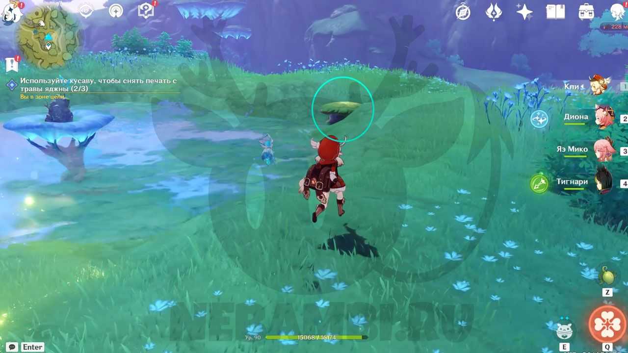 Ко второму попасть посложнее. Переместитесь по символам обратно к траве яджны.