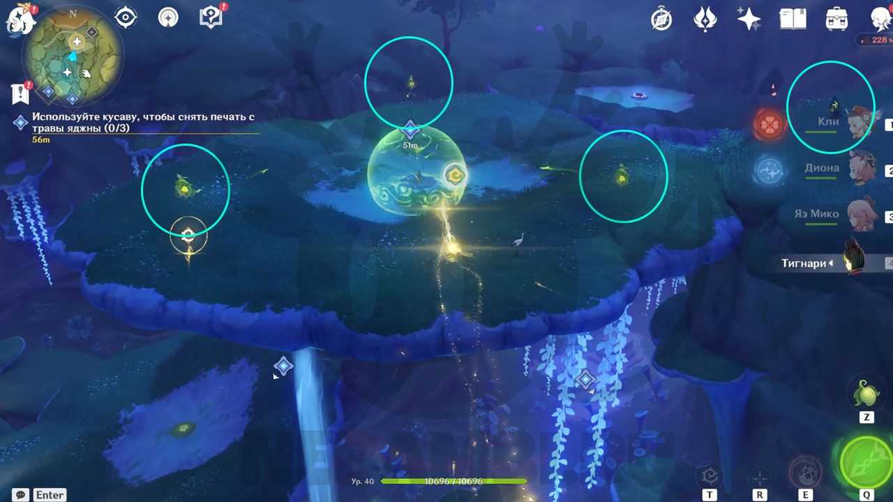 Для прохождения вам потребуется дендро и электро-персонаж. Чтобы решить эту загадку, нужно найти семь особых грибов.