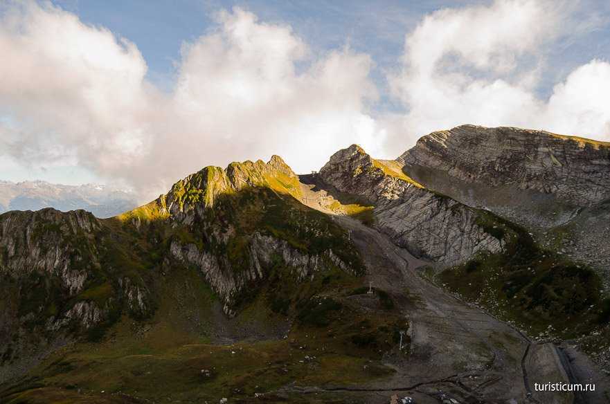 До двух пиков, «Черной пирамиды» и «Каменного столба», можно добраться на кресельной канатке, а можно и самостоятельно, сэкономив деньги. Наверху вас будет ждать небольшое вознаграждение в виде прогулки по подвесному мосту, а также возможность увидеть с одной стороны туманную Россию, а с другой – солнечную Абхазию. Для покорения всех точек понадобятся целые сутки, но при помощи подвесных вагончиков можно уложиться и за полдня.