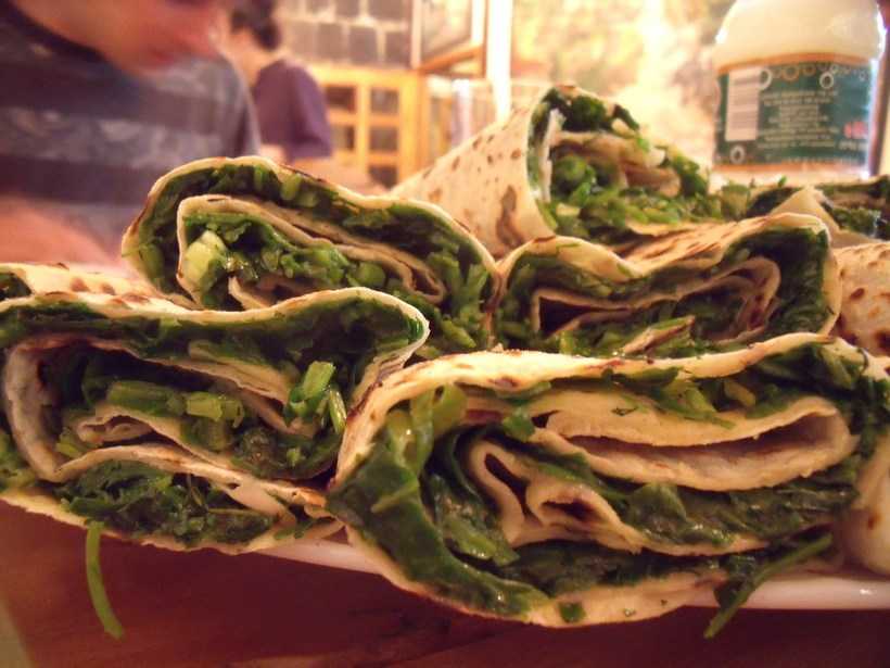 Это кулинарная визитная карточка Арцаха. Настоящий женгялов хац — своеобразная лепешка с начинкой из не менее чем 25 видов различной зелени. Впервые я попробовала женгялов хац несколько лет назад в одном из эко-ресторанов Гарни. Вкус необычный, но второй раз я бы его не заказала.