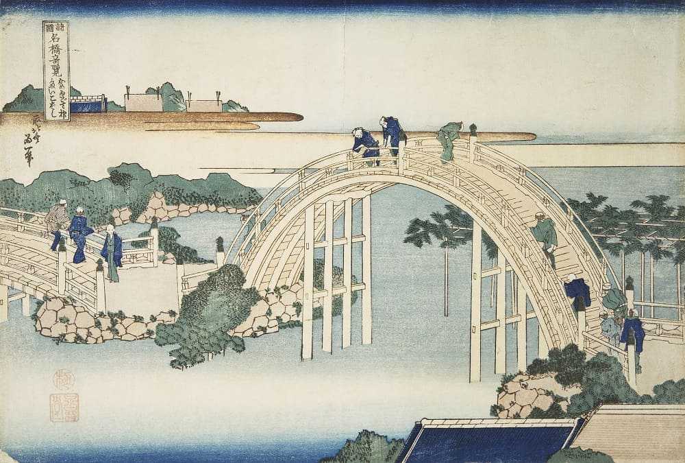 К. Хокусай «Мост у храма Камэйдо» Тэндзин, 1834 годМестонахождение: Музей изобразительных искусств, Страсбург, Франция