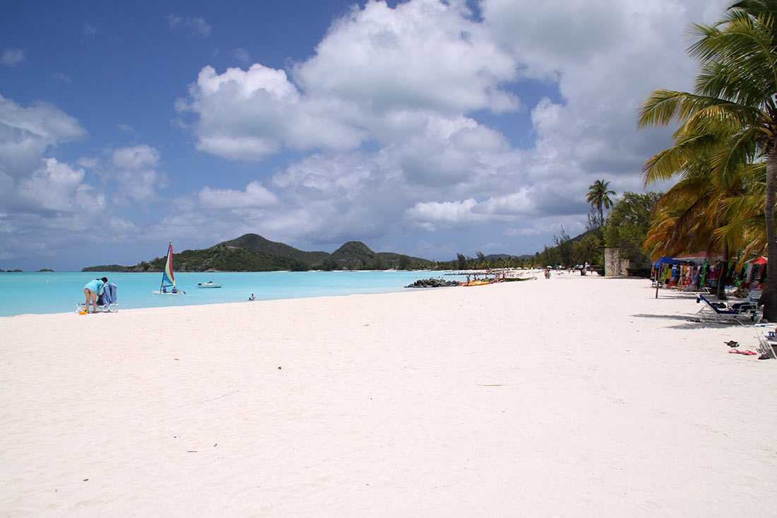Окруженный нетронутыми рифами, Антигуа имеет великолепную береговую линию. Она отличается белыми песчаными пляжами и тихими гаванями. Берега привлекают моряков для международного события Sailing Week. Это один из самых солнечных островов Карибского моря. Здесь почти целый год светит солнце и мало дождей.
