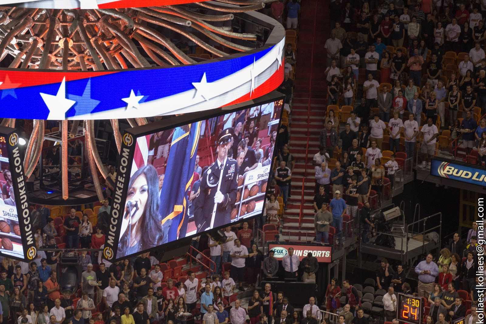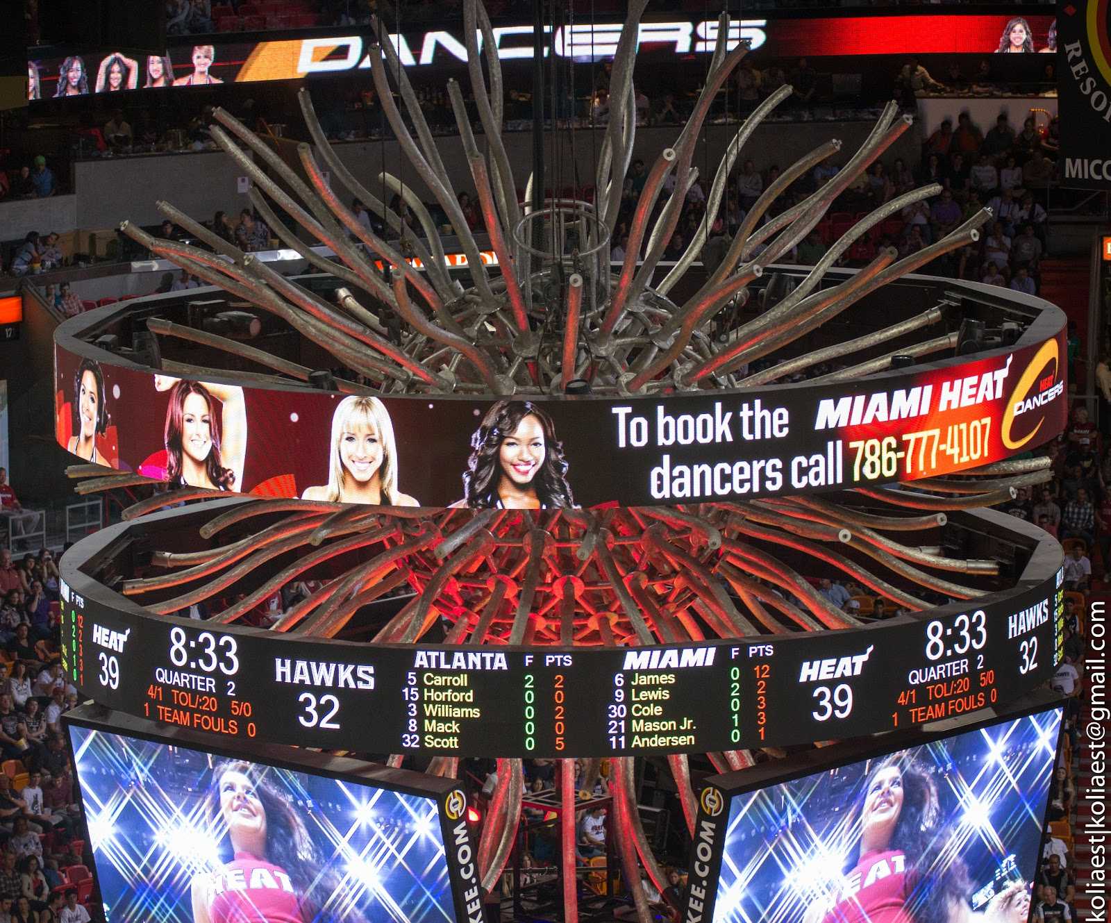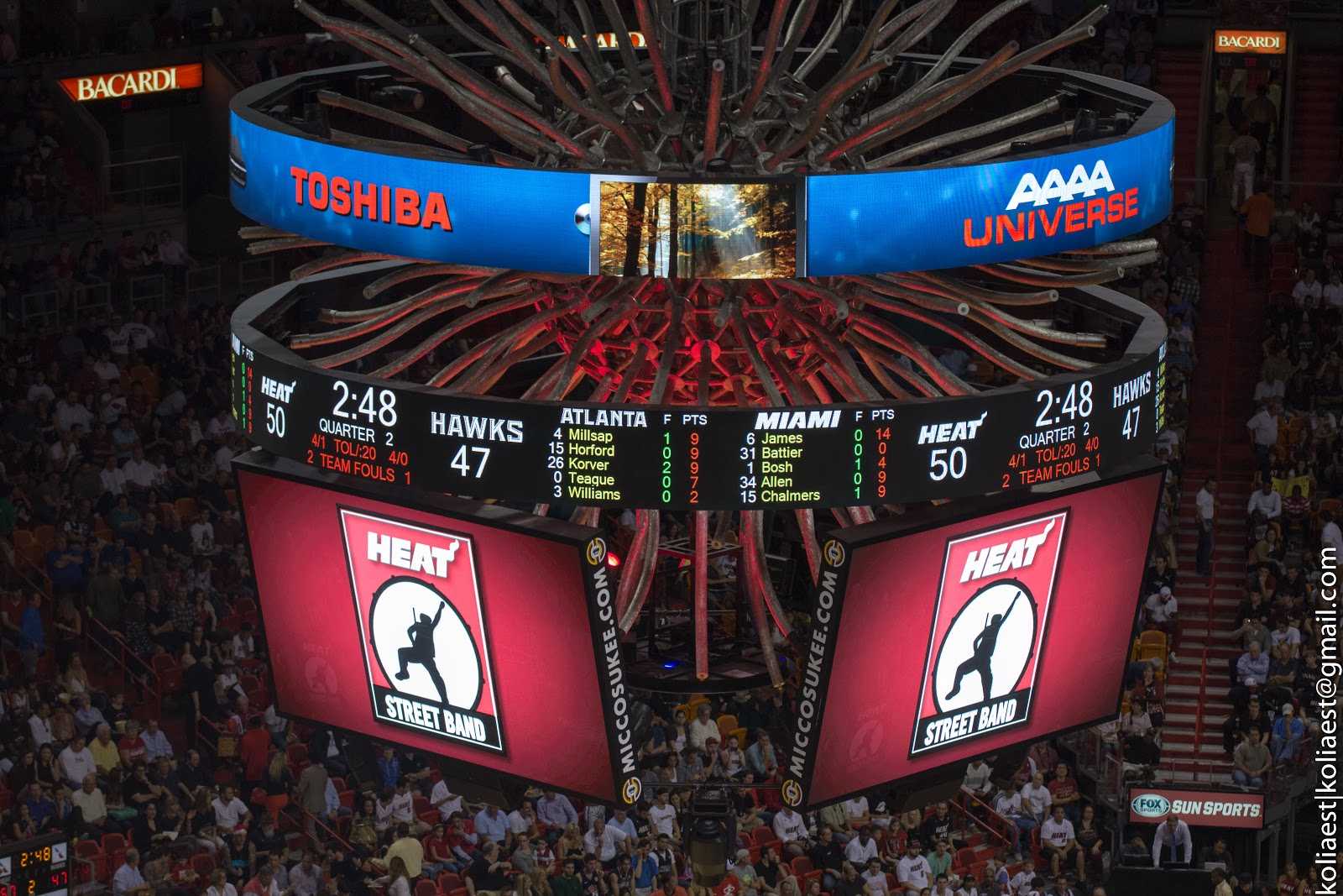 Рядом с нами сидела семья типичных американских реднеков, весь матч махавашая самодельными плакатами «LeBron for MVP» в надежде попасть в камеру — но не судьба, их там и не показали)