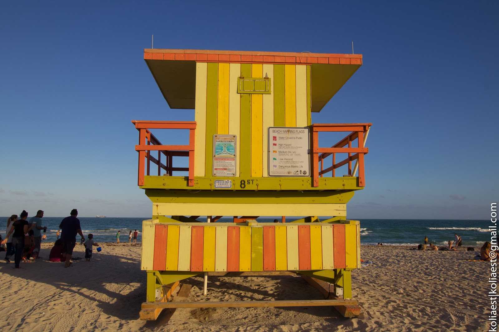 Каждые метров 100 стоят будки спасателей с вывешенными на них флагами, разрешающими/запрещающими купаться.
