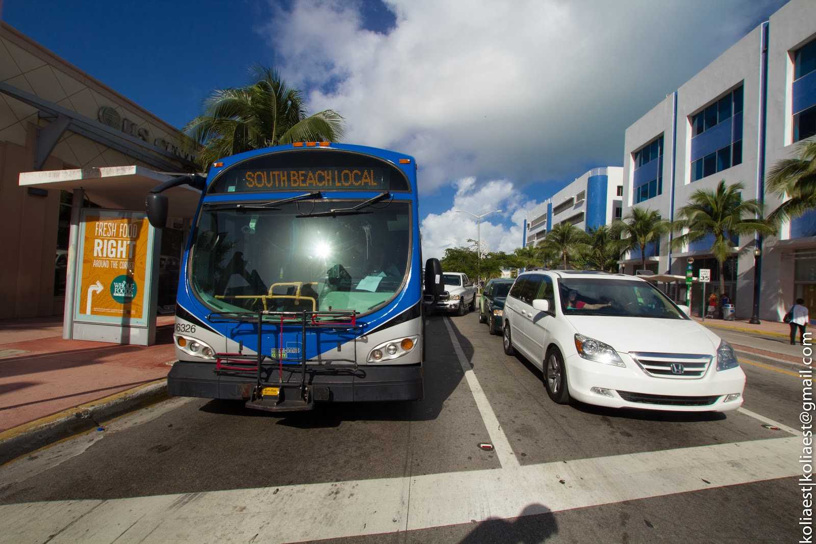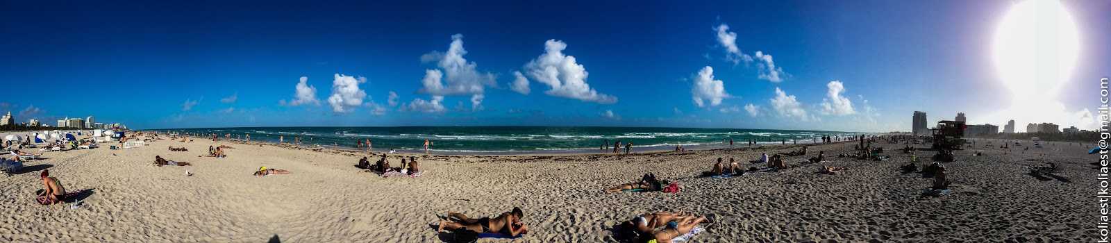 Сытые, мы направились в сторону живописного пляжа Майами-Бич. Изначально я, сверившись заранее с картами Гугл, планировал пройтись пешком (перейти через пару мостов, затратив на дорогу 30-40 минут), но жаркое солнце, раскалившее атмосферу бизнес-квартала Майми, внесло в планы коррективы: было решено найти автобус, который бы и довез нас до места назначения. Таких маршрутов несколько. На автобусной станции, после недолгого ожидания, садимся в один из них.