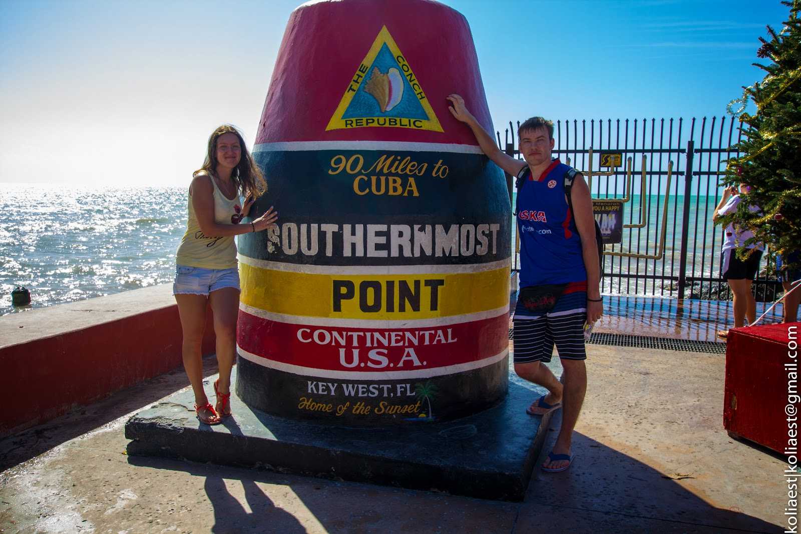 Стоять под знойным солнцем Флориды было довольно сложно, но все-таки нельзя было упустить возможность сфотографироваться с самой южной точкой и самой южной елкой США