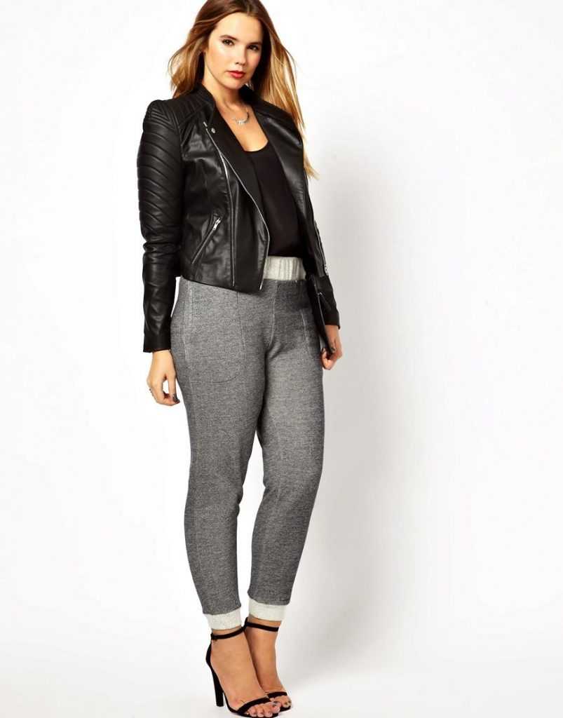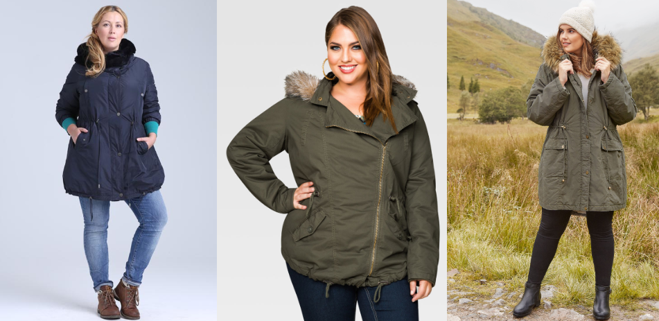 Куртки типа пончо прекрасно «сидят» на объемной фигуре. Носят их с кожаными штанами, джинсами, классическими брюками и юбками. Сочетание куртки фасона пончо с офисными брюками и ботинками — вариант делового спортивного стиля для полных женщин. Парки надевают девушки любого телосложения. Изделия универсальны за счет прямого кроя, неброской фурнитуры и сдержанного фасона.