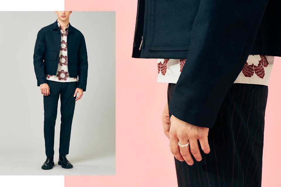 Узкие брюки Dries Van Noten в тонкую, практически незаметную, полоску в цвет принта на рубашке (девушка должна оценить такое внимание к деталям). И эта минималистская темно-синяя куртка из хлопчатобумажной ткани от Jil Sander будет отлично смотреться практически со всем