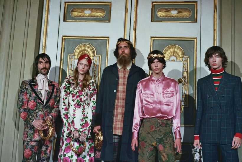 Не менее впечатляющим оказался и круизный показ в Нью-Йорке. Без его упоминания биография Алессандро Микеле была бы неполной. Это стало доказательством того, что предыдущий успех дизайнера был не случайным. У публики сложилось впечатление, что они на машине времени переместились в беззаботные бунтарские 60-70-е прошлого столетия. Снова брюки с расклешенными штанинами, платья с кружевными воротниками, плиссированные юбки. Особое значение было уделено аксессуарам и декорированию. Многие наряды украшали вышитые незаурядные орнаменты.