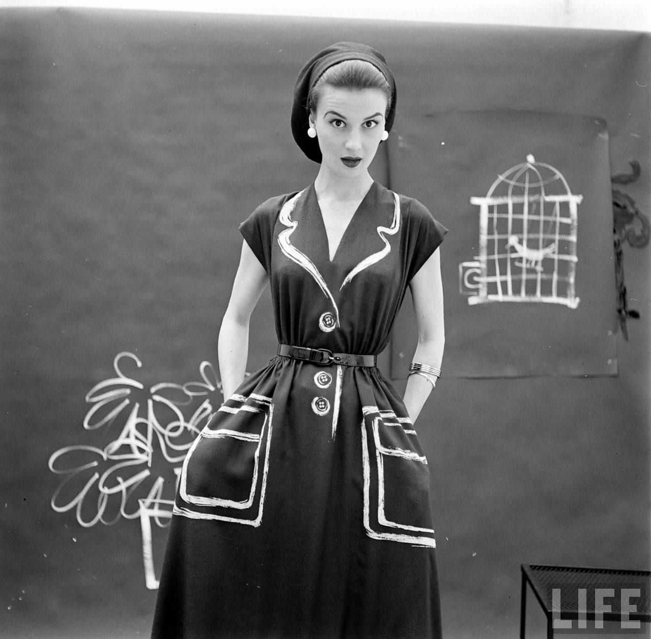 Первые шоу помогала готовить создательница Нью-йоркской недели моды Элеонора Ламбер. Кроме французских гостей приехало много американцев — потенциальных партнеров парижских домов. Увы, не все дизайнеры успели отшить коллекции в срок. Одним из таких был Рубен Торрес. Но он нашел изящное решение и просто нарисовал на моделях одежду — воротники, пуговицы, строчки.
