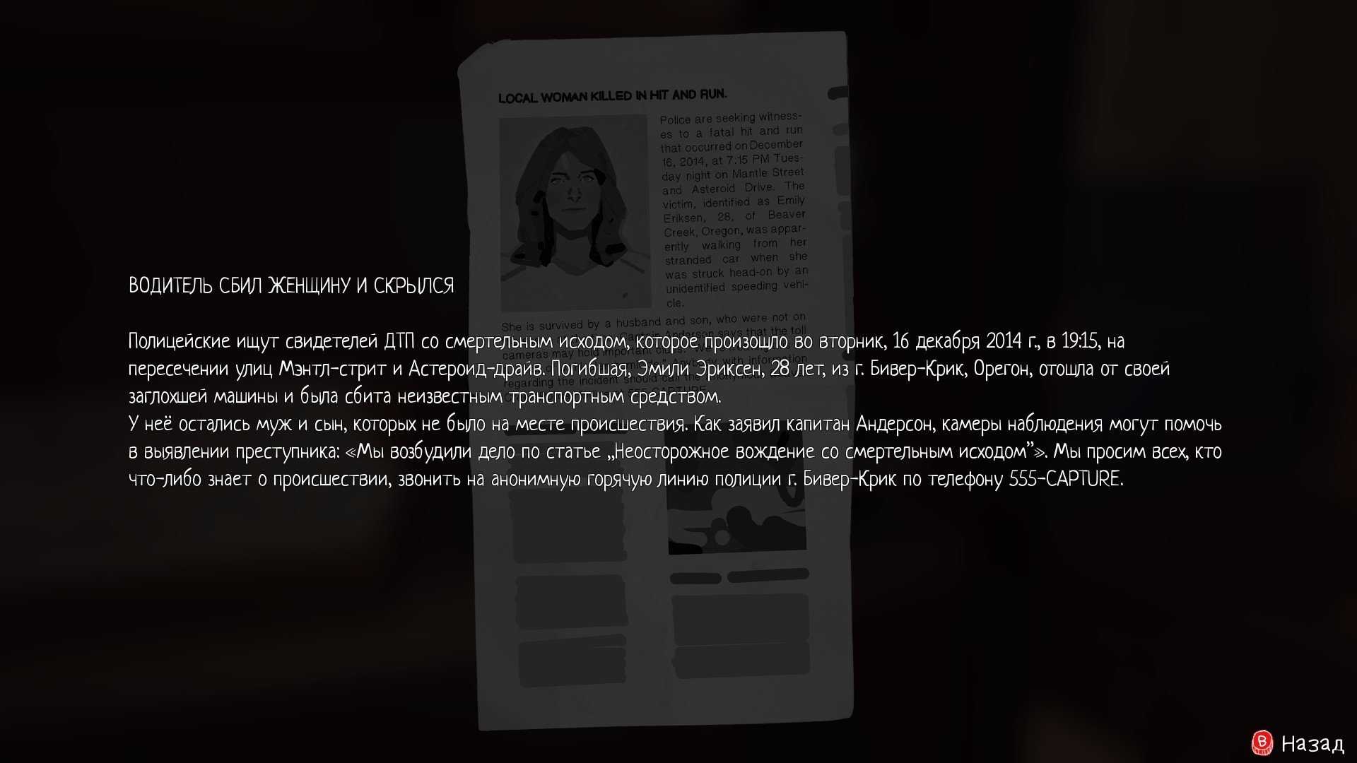 Можно заметить, что последняя метка датирована 2014 годом (семь лет). События игры происходят в Рождество (25 декабря) 2016 года. Как это можно узнать? Про Рождество говорят сами персонажи, а год можно определить, изучив почтовый ящик на ноутбуке отца.