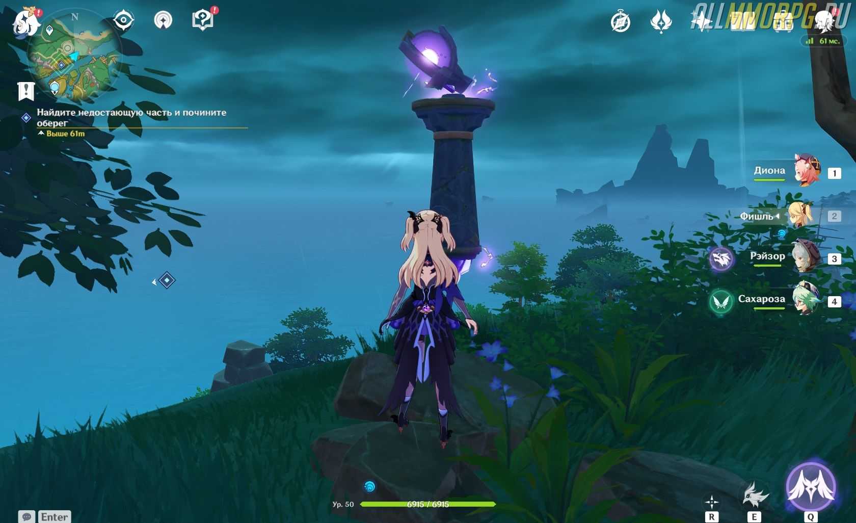 Обе части оберега спрятаны под водным куполом. Чтобы снять защиту, вам необходимо правильно активировать столбы. Подойдите к ним и взаимодействуйте для настройки высоты и поворота. На изображении ниже вы можете увидеть, как правильно расположить столбы для снятия водного купола. После вызовите любого лучника и ударьте его заряженной атакой по первому светящемуся столбу. Он выпустит электро-сгусток, который пролетит через все столбы и в итоге попадет в барьер. Если вы все сделали правильно, то запустится кат-сцена, в ходе которой вам покажут, как рассеивается водный купол. В том случае, если у вас не получается правильно расположить столбы, посмотрите изображения ниже. На скриншотах показано, как должен быть повернуть каждый из них.