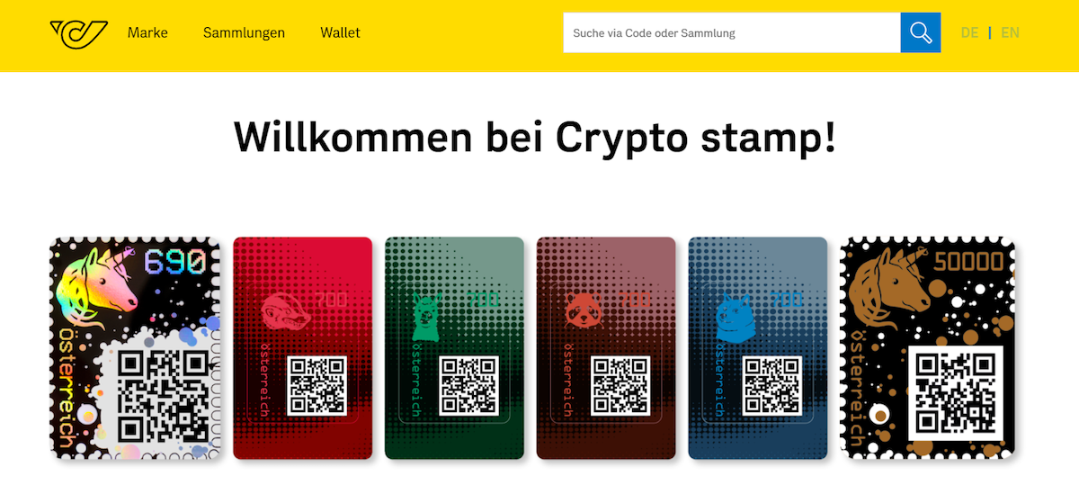 Еще один пример связки реального и виртуального мира через NFT — проект Crypto Stamp австрийской почтовой службы. Это почтовые марки, привязанные к токенам. Их используют для отметки реальных почтовых отправлений. При этом каждая марка сохраняется на блокчейне и может быть частью цифровой филателистической коллекции.