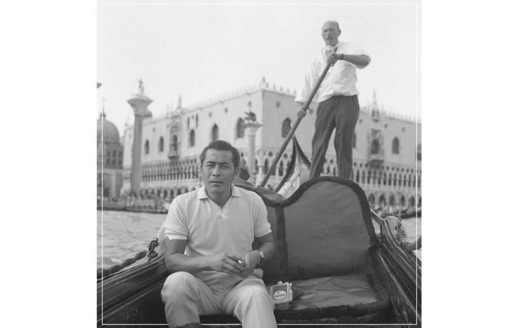 Тосиро Мифунэ в поразительном фильме «Телохранитель» (1961), снятом Акирой Куросавой. Японский актер играет блуждающего ронина, который, когда его спрашивают его имя, отвечает «Kuwabatake Sanjuro» или «30-летнее тутовое поле». Итак, оригинальный человек без имени? Разумеется, культурный обмен протекает в обоих направлениях, и Мифунэ был явно так же вдохновлен итальянским способом одевания, поскольку Серджо Леоне, режиссер фильма «За пригоршню долларов», который был вдохновлен японским стилем кинопроизводства. Здесь он находится на Венецианском кинофестивале в 1961 году, где он выиграл Кубок Вольпи за лучшую мужскую роль в своем выступлении в фильме «Телохранитель», умело показывая в лодке по каналу итальянский летний стиль своей хрустящей белой рубашки поло и брюк.