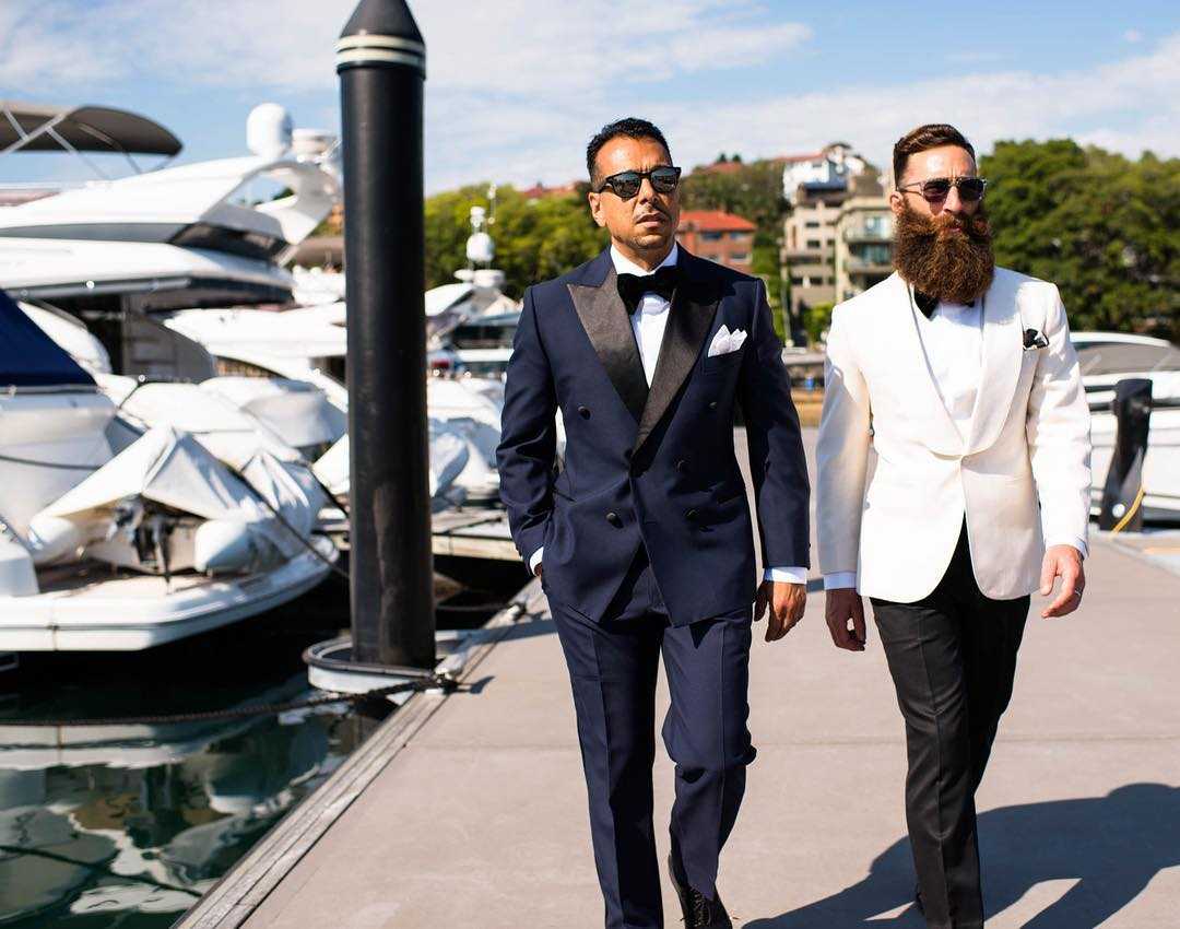 Смельчаки могут надеть розовый или ярко алый костюм, а вот тем мужчинам, которым сложно даются эксперименты, следует остановить свой выбор на винно-бордовых тонах. Такие оттенки отлично подходят для свадебного костюма двойки и тройки, а также безупречно сочетаются с черными аксессуарами или элементами (как, например, смокинг марсала с черными лацканами).