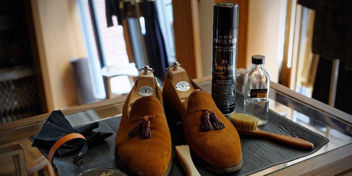 Замшевые туфли необходимо ежедневно очищать специальной щеткой. В них нельзя выходить из дома в дождь или грязь. На обувь регулярно нужно наносить особый водонепроницаемый спрей, который создаст оберегающую пленку и защитит обувь при внезапной перемене погоды