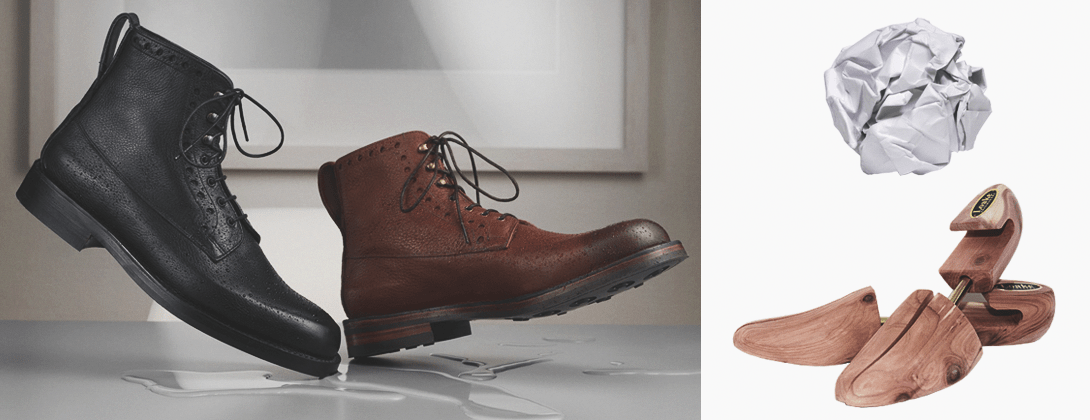 Важно использовать деревянные колодки (особенно с кожаной обувью) либо набивать внутрь обуви чистую бумагу, чтобы обувь сохранила форму при высыхании. Не используй для этого газеты: они содержат краску, которая может впитаться в обувь