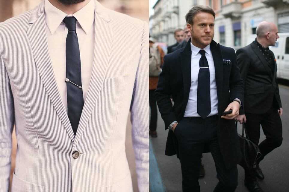 Этот наряд требует наименьшего количества аксессуаров. Помните, что заколка не добавляет элегантности. Как раз наоборот — в классической мужской моде с высоким классом и элегантностью это доказано наименьшим количеством аксессуаров. Поэтому зажимы подходят для менее формальной стилизации с костюмом, например, для работы, свадьбы и других мероприятий с танцами и едой.